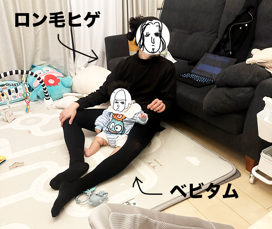 夜はベビタムが永遠に寝なかったらしく、私が風呂入っている間に、ロン毛ヒゲが苦戦していた。