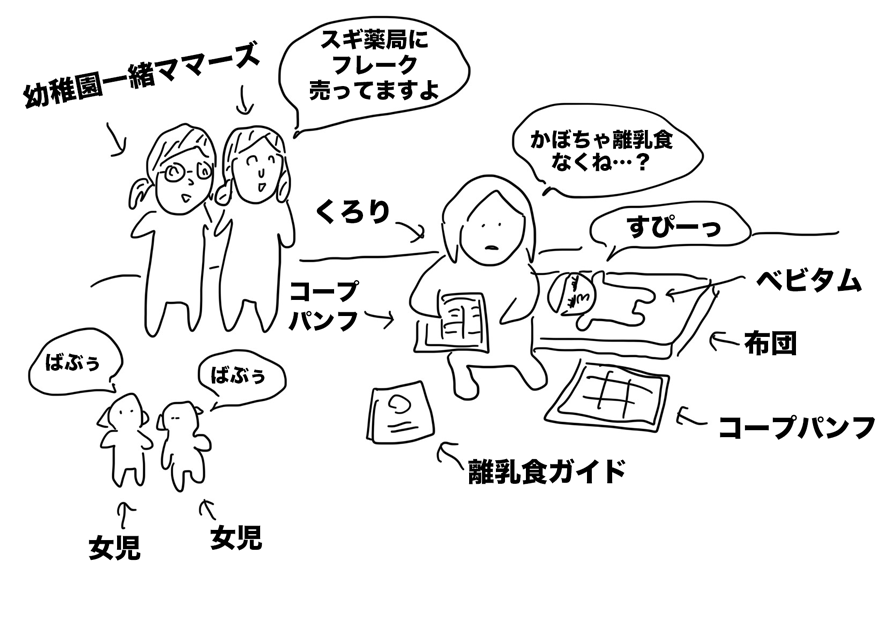 やることがなかったので、コープのカタログを広げて、ベビタムの離乳食をどうすべきか悩んでいたら、ヨガに参加していたお母さんから助言。