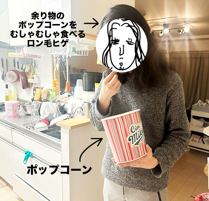 ロン毛ヒゲは余ったポップコーンをぼりぼり食ってて、意地汚かった