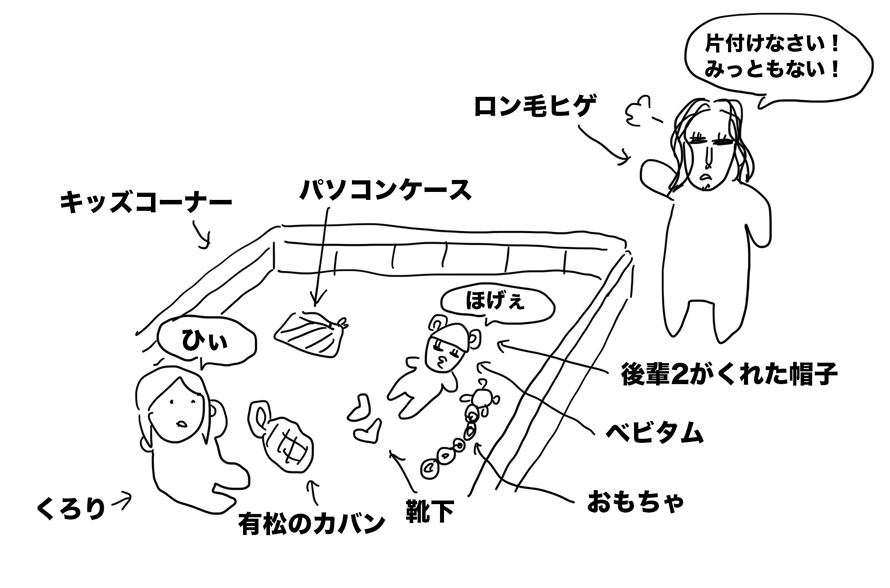 しばらくすると、ロン毛ヒゲがキッズコーナーに迎えにくる。