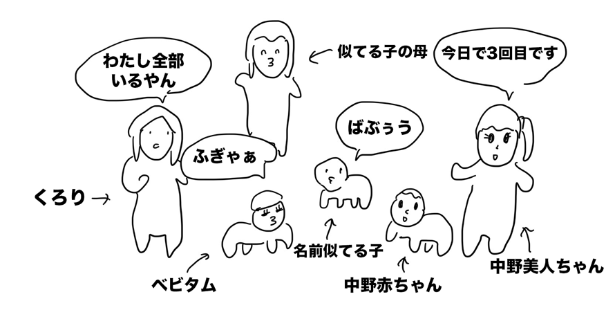 赤ちゃんコーナーには中野美人ちゃんと、よく見かけるベビタムと名前似ている子のお母さんのみだ。